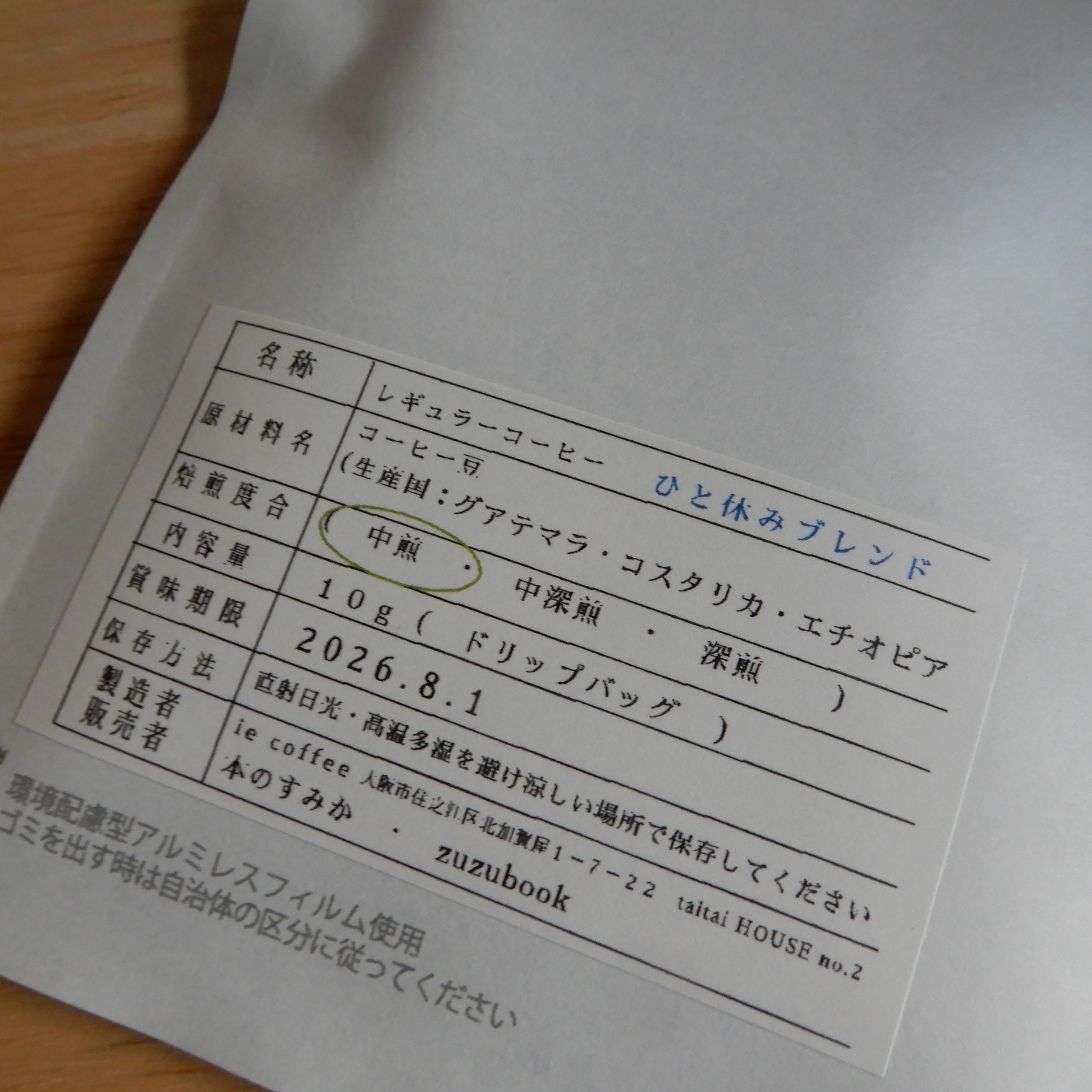 オリジナルドリップバッグコーヒー「ひと休みブレンド」(本のすみか × zuzubook)